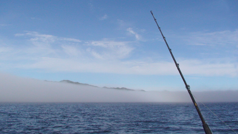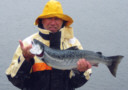 Angel raus, warten und hoffen … Das Warten dauerte nur einen kurzen Moment und schon hing ein schöner Pazifiklachs an der Angel. Selbstgefangen schmecken diese Burschen halt doppelt so gut, auch wenn das nur in der Illusion liegt.