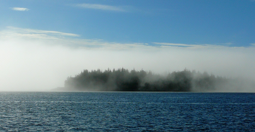 Zum Einklarieren in Kanada mussten wir wieder nach Prince Ruppert fahren. Obschon uns die Strecke dieses Mal schon bekannt war, wurde es, des dichten Nebels wegen, eine richtige Abenteuerfahrt. Dank Radar und genauen elektronischen Karten stieg der Adrenalinspiegel aber nicht auf allzu gefährliche Höhen an.