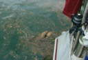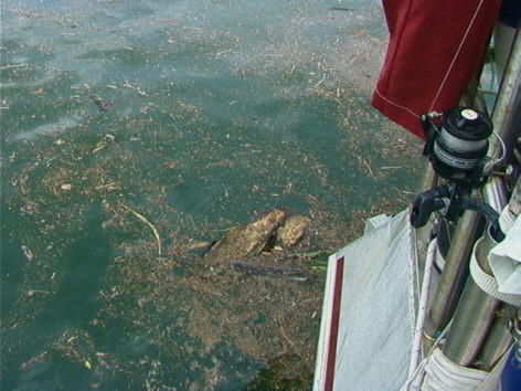 nur trüben und dieselangereicherten Wasser der Bucht von Chaguaramas.