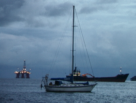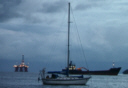 auf den noch intakten Urwald von Tobago, nun der Blick auf eine Oelbohrinsel